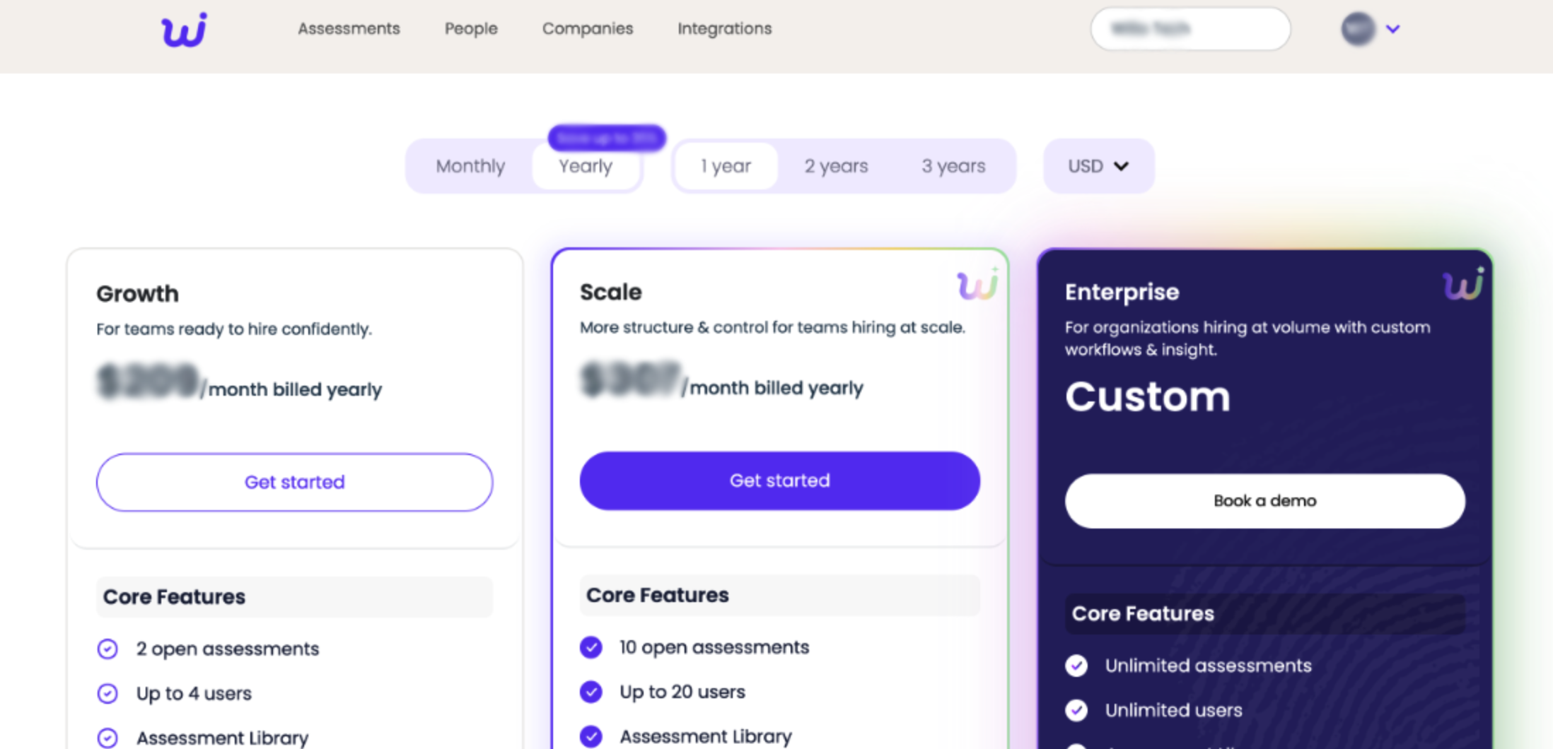 - This will take you to our Pricing page, where you can then select your desired plan and contract length. If you are selecting either a Growth or Scale plan option, you can click the 'Get Started' button which will then take you through to the payment page.