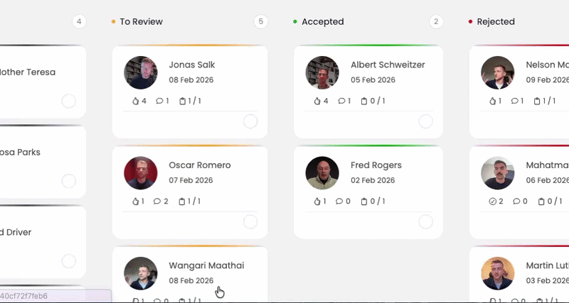 To generate a showcase link click on any candidate and then select Share: