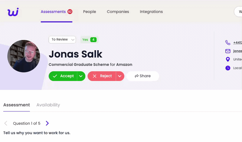 To share a candidate response with someone else outside your organisation follow the steps below to copy and paste a share link into an email or message. They do not need to log in to view the content, and your content remains encrypted and only accessible to people with the link: