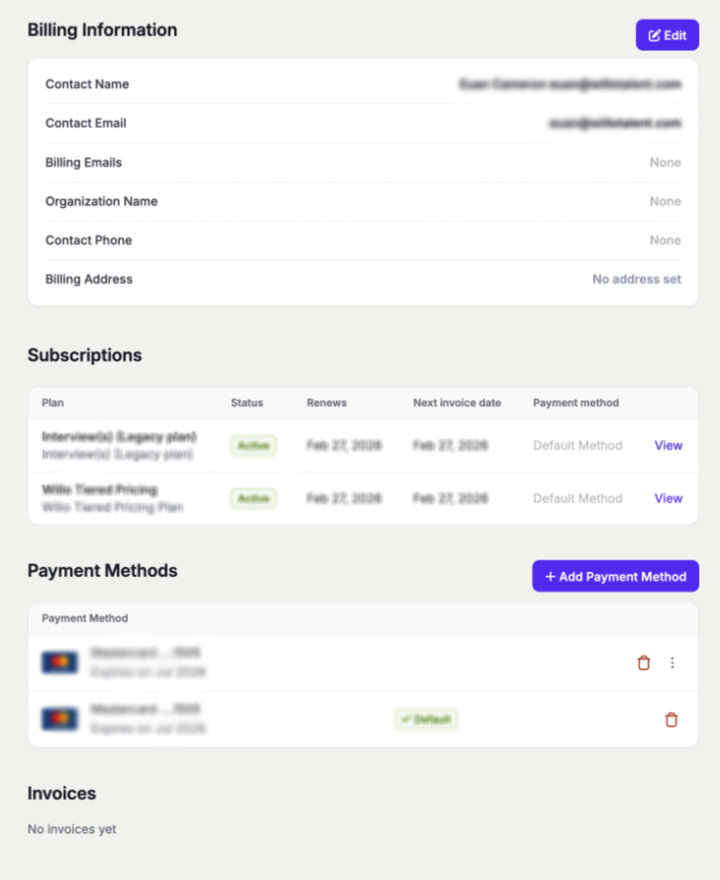 - Once you are in the Willo Subscription Portal, view your current subscription