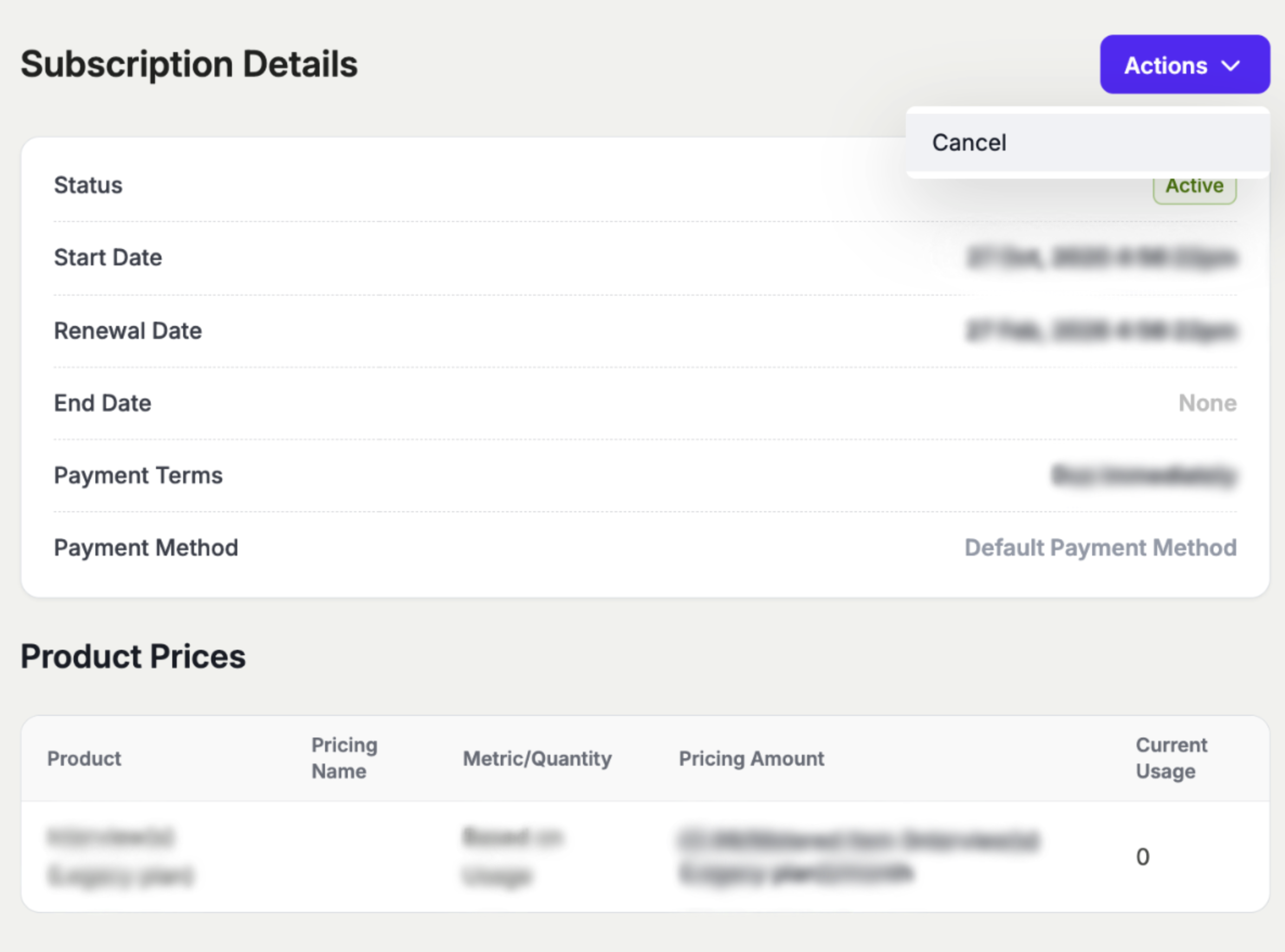 - Click on the 'Actions' dropdown button and click 'Cancel'